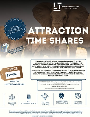 Imagine owning a piece of paradise, where every year you can escape to the perfect holiday during peak seasons like Christmas or school holidays. A timeshare with Lifetime Destinations isn’t just about a place to stay—it’s about experiencing the joy of travel, creating cherished moments with loved ones, and having the freedom to explore incredible destinations locally and globally.